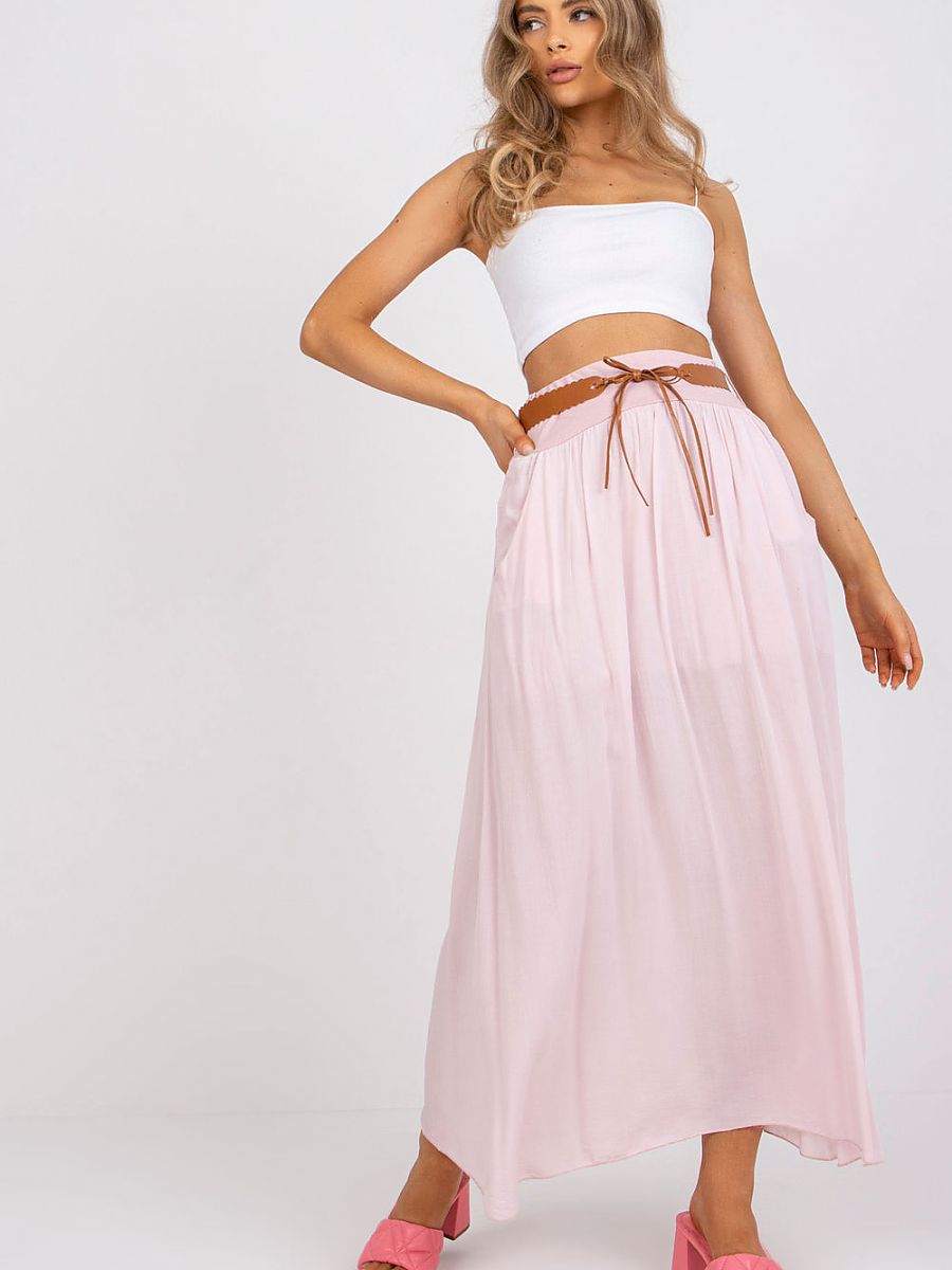 Long skirt with high waist, lined. The skirt has an additional strap to tie.