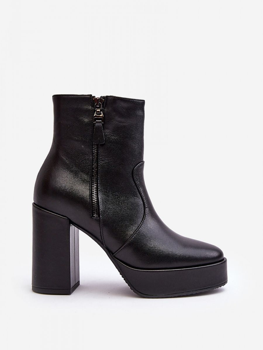 Women's boots made of natural leather. Set on a massive post and platform. Rounded toe caps. Zip fastening. Stiffened heel counter. Insole insulated with shoe blanket. You should definitely have them!